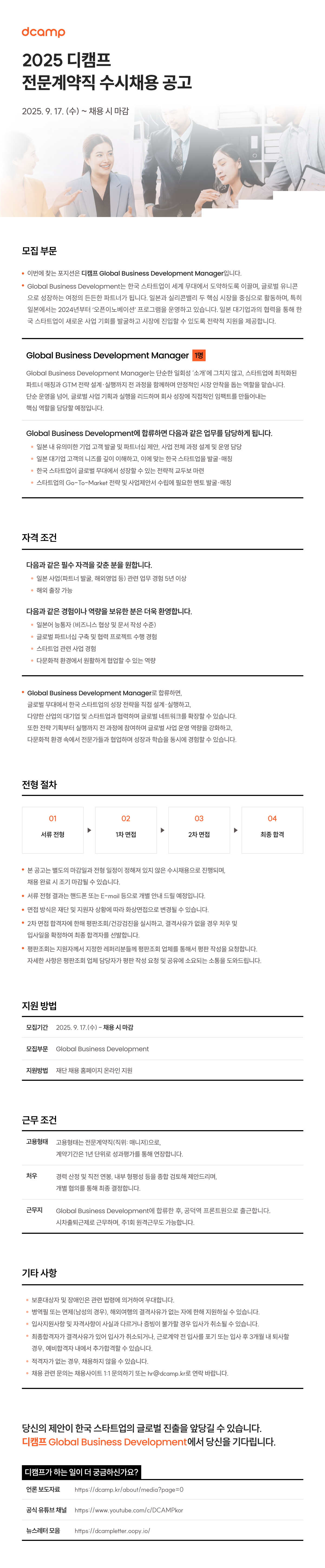 [사업실/Global Business Development] 2025년 디캠프 전문계약직 수시채용